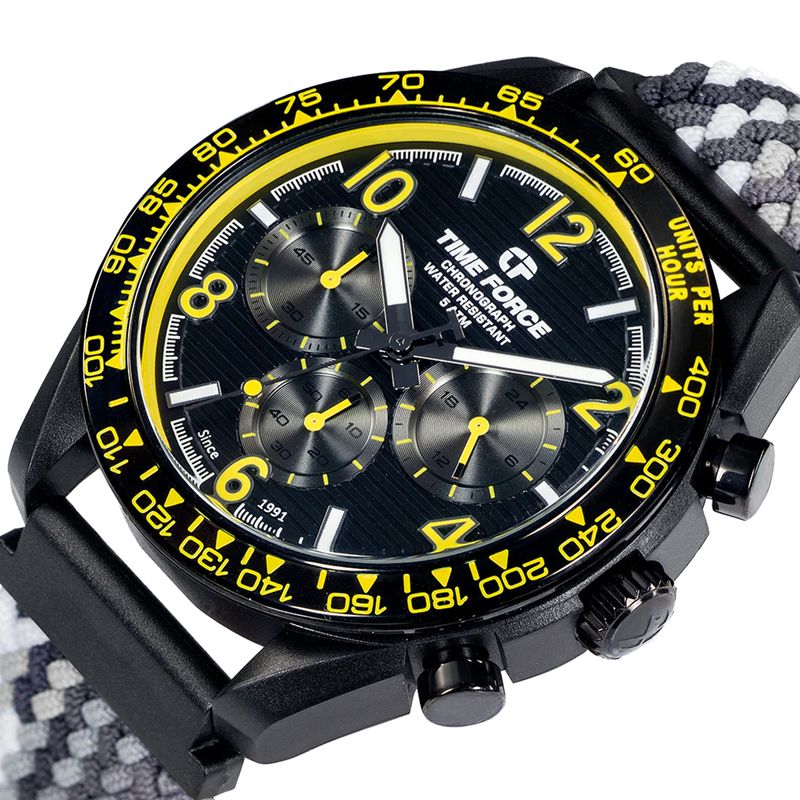 Time Force es una marca de relojes fundada en 1991 en Suiza reconocida por combinar la precisión suiza con un diseño moderno, deportivo y elegante. Desde sus inicios se ha destacado por ofrecer relojes de alta calidad a precios accesibles. Bajo el eslogan “Ultimate Concept Watches”, la marca busca transmitir fuerza, innovación y estilo, ofreciendo modelos tanto para hombres como para mujeres, con colecciones que equilibran moda y funcionalidad. Time Force mantiene una identidad dinámica y contemporánea, orientada a quienes buscan un reloj con carácter, de buena calidad y diseño distintivo.