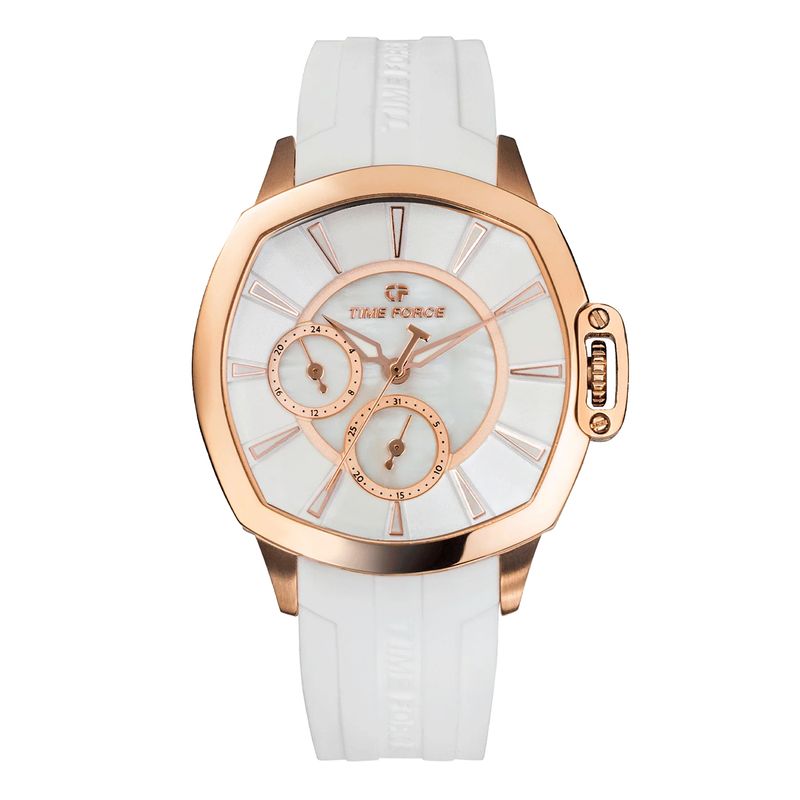 Time Force es una marca de relojes fundada en 1991 en Suiza reconocida por combinar la precisión suiza con un diseño moderno, deportivo y elegante. Desde sus inicios se ha destacado por ofrecer relojes de alta calidad a precios accesibles. Bajo el eslogan “Ultimate Concept Watches”, la marca busca transmitir fuerza, innovación y estilo, ofreciendo modelos tanto para hombres como para mujeres, con colecciones que equilibran moda y funcionalidad. Time Force mantiene una identidad dinámica y contemporánea, orientada a quienes buscan un reloj con carácter, de buena calidad y diseño distintivo.