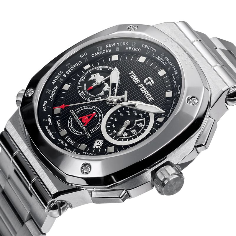 Time Force es una marca de relojes fundada en 1991 en Suiza reconocida por combinar la precisión suiza con un diseño moderno, deportivo y elegante. Desde sus inicios se ha destacado por ofrecer relojes de alta calidad a precios accesibles. Bajo el eslogan “Ultimate Concept Watches”, la marca busca transmitir fuerza, innovación y estilo, ofreciendo modelos tanto para hombres como para mujeres, con colecciones que equilibran moda y funcionalidad. Time Force mantiene una identidad dinámica y contemporánea, orientada a quienes buscan un reloj con carácter, de buena calidad y diseño distintivo.
